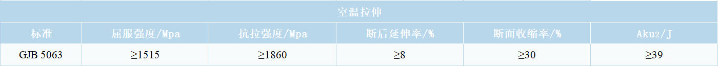 該鋼按供需協(xié)議,可制作要求抗疲勞、抗應(yīng)力腐蝕,并承受較大載荷的超高強(qiáng)度螺栓,如飛機(jī)起落架螺栓等。強(qiáng)度等級(jí)不小于1860MPa。但該鋼對(duì)氫脆較為敏感,只能采用氧化、涂漆等防護(hù)方式,耐蝕性有限,在要求高耐蝕性的場(chǎng)合,該鋼不適用。
