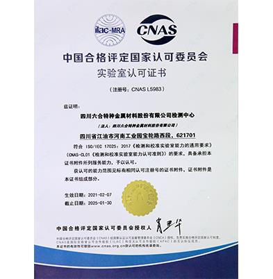 實(shí)驗(yàn)室認(rèn)可證書
