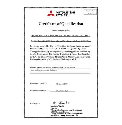 三菱合格供應(yīng)商證書